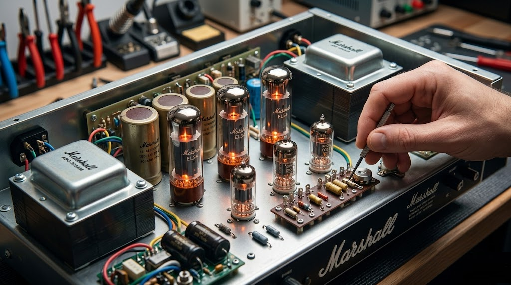 For Marshall valve amplifiers, we replace power tubes and pre-amp tubes, including bias adjustment to ensure optimal tone and tube life.